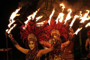- Sunset at Tanah Lot: As the sun sets in the west, you’ll witness a breathtaking view. The sky is painted in shades of orange and red, creating a warm golden light over Tanah Lot and the surrounding ocean.